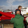Vagtskiftet ved Marselisborg Slot skærtorsdag kl. 12 tiltrak mange fremmødte, mens politiets indsatsleder undervejs tog sig tid til at besvare spørgsmål fra en nysgerrig dreng.