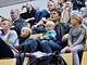 Vagtskiftet ved Marselisborg Slot skærtorsdag kl. 12 tiltrak mange fremmødte, mens politiets indsatsleder undervejs tog sig tid til at besvare spørgsmål fra en nysgerrig dreng.
