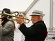 Vagtskiftet ved Marselisborg Slot skærtorsdag kl. 12 tiltrak mange fremmødte, mens politiets indsatsleder undervejs tog sig tid til at besvare spørgsmål fra en nysgerrig dreng.