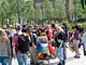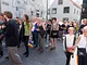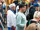 Vagtskiftet ved Marselisborg Slot skærtorsdag kl. 12 tiltrak mange fremmødte, mens politiets indsatsleder undervejs tog sig tid til at besvare spørgsmål fra en nysgerrig dreng.