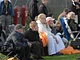 Vagtskiftet ved Marselisborg Slot skærtorsdag kl. 12 tiltrak mange fremmødte, mens politiets indsatsleder undervejs tog sig tid til at besvare spørgsmål fra en nysgerrig dreng.