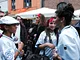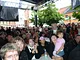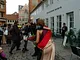 Vagtskiftet ved Marselisborg Slot skærtorsdag kl. 12 tiltrak mange fremmødte, mens politiets indsatsleder undervejs tog sig tid til at besvare spørgsmål fra en nysgerrig dreng.