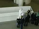 Vagtskiftet ved Marselisborg Slot skærtorsdag kl. 12 tiltrak mange fremmødte, mens politiets indsatsleder undervejs tog sig tid til at besvare spørgsmål fra en nysgerrig dreng.