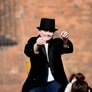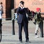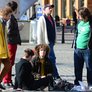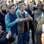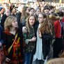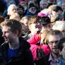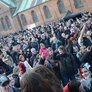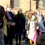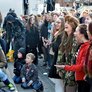 Vagtskiftet ved Marselisborg Slot skærtorsdag kl. 12 tiltrak mange fremmødte, mens politiets indsatsleder undervejs tog sig tid til at besvare spørgsmål fra en nysgerrig dreng.
