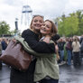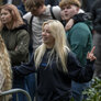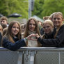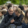 Vagtskiftet ved Marselisborg Slot skærtorsdag kl. 12 tiltrak mange fremmødte, mens politiets indsatsleder undervejs tog sig tid til at besvare spørgsmål fra en nysgerrig dreng.