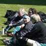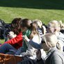 Vagtskiftet ved Marselisborg Slot skærtorsdag kl. 12 tiltrak mange fremmødte, mens politiets indsatsleder undervejs tog sig tid til at besvare spørgsmål fra en nysgerrig dreng.