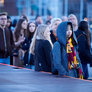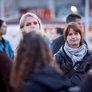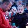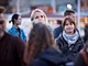 Vagtskiftet ved Marselisborg Slot skærtorsdag kl. 12 tiltrak mange fremmødte, mens politiets indsatsleder undervejs tog sig tid til at besvare spørgsmål fra en nysgerrig dreng.