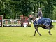 Imponerende hestespring, Grand Prix og Derby (135 cm) på en drivende våd lørdag. Forholdsvis mange trodsede vejret og nød den flotte opvisning.