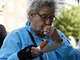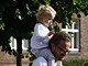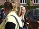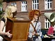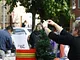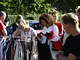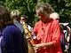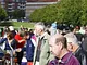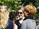 Vagtskiftet ved Marselisborg Slot skærtorsdag kl. 12 tiltrak mange fremmødte, mens politiets indsatsleder undervejs tog sig tid til at besvare spørgsmål fra en nysgerrig dreng.