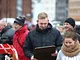 Vagtskiftet ved Marselisborg Slot skærtorsdag kl. 12 tiltrak mange fremmødte, mens politiets indsatsleder undervejs tog sig tid til at besvare spørgsmål fra en nysgerrig dreng.
