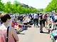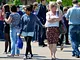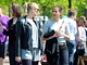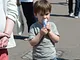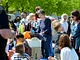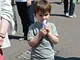Vagtskiftet ved Marselisborg Slot skærtorsdag kl. 12 tiltrak mange fremmødte, mens politiets indsatsleder undervejs tog sig tid til at besvare spørgsmål fra en nysgerrig dreng.
