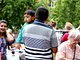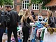 Vagtskiftet ved Marselisborg Slot skærtorsdag kl. 12 tiltrak mange fremmødte, mens politiets indsatsleder undervejs tog sig tid til at besvare spørgsmål fra en nysgerrig dreng.