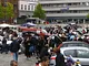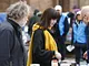 Vagtskiftet ved Marselisborg Slot skærtorsdag kl. 12 tiltrak mange fremmødte, mens politiets indsatsleder undervejs tog sig tid til at besvare spørgsmål fra en nysgerrig dreng.