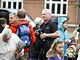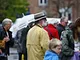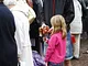 Vagtskiftet ved Marselisborg Slot skærtorsdag kl. 12 tiltrak mange fremmødte, mens politiets indsatsleder undervejs tog sig tid til at besvare spørgsmål fra en nysgerrig dreng.