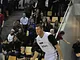 Vagtskiftet ved Marselisborg Slot skærtorsdag kl. 12 tiltrak mange fremmødte, mens politiets indsatsleder undervejs tog sig tid til at besvare spørgsmål fra en nysgerrig dreng.