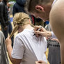Vagtskiftet ved Marselisborg Slot skærtorsdag kl. 12 tiltrak mange fremmødte, mens politiets indsatsleder undervejs tog sig tid til at besvare spørgsmål fra en nysgerrig dreng.