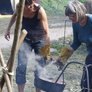 Vagtskiftet ved Marselisborg Slot skærtorsdag kl. 12 tiltrak mange fremmødte, mens politiets indsatsleder undervejs tog sig tid til at besvare spørgsmål fra en nysgerrig dreng.