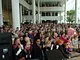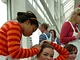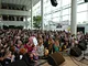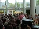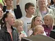 Vagtskiftet ved Marselisborg Slot skærtorsdag kl. 12 tiltrak mange fremmødte, mens politiets indsatsleder undervejs tog sig tid til at besvare spørgsmål fra en nysgerrig dreng.