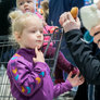 Vagtskiftet ved Marselisborg Slot skærtorsdag kl. 12 tiltrak mange fremmødte, mens politiets indsatsleder undervejs tog sig tid til at besvare spørgsmål fra en nysgerrig dreng.
