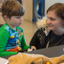 Vagtskiftet ved Marselisborg Slot skærtorsdag kl. 12 tiltrak mange fremmødte, mens politiets indsatsleder undervejs tog sig tid til at besvare spørgsmål fra en nysgerrig dreng.
