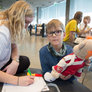 Tranen er et helligt dyr i Japan og symbol på lykke og held. Hver onsdag foldes der Traner i Verdensrummet på Dokk1.