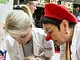 Vagtskiftet ved Marselisborg Slot skærtorsdag kl. 12 tiltrak mange fremmødte, mens politiets indsatsleder undervejs tog sig tid til at besvare spørgsmål fra en nysgerrig dreng.