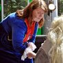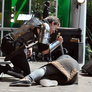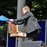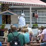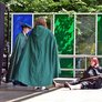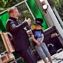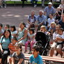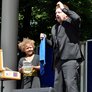 Vagtskiftet ved Marselisborg Slot skærtorsdag kl. 12 tiltrak mange fremmødte, mens politiets indsatsleder undervejs tog sig tid til at besvare spørgsmål fra en nysgerrig dreng.