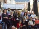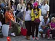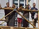 Vagtskiftet ved Marselisborg Slot skærtorsdag kl. 12 tiltrak mange fremmødte, mens politiets indsatsleder undervejs tog sig tid til at besvare spørgsmål fra en nysgerrig dreng.