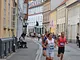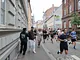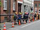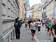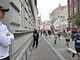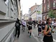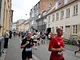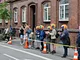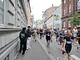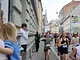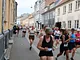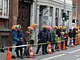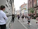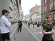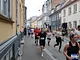 Vagtskiftet ved Marselisborg Slot skærtorsdag kl. 12 tiltrak mange fremmødte, mens politiets indsatsleder undervejs tog sig tid til at besvare spørgsmål fra en nysgerrig dreng.