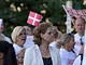 Vagtskiftet ved Marselisborg Slot skærtorsdag kl. 12 tiltrak mange fremmødte, mens politiets indsatsleder undervejs tog sig tid til at besvare spørgsmål fra en nysgerrig dreng.