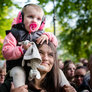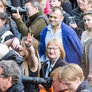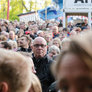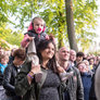 Vagtskiftet ved Marselisborg Slot skærtorsdag kl. 12 tiltrak mange fremmødte, mens politiets indsatsleder undervejs tog sig tid til at besvare spørgsmål fra en nysgerrig dreng.