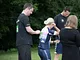 Vagtskiftet ved Marselisborg Slot skærtorsdag kl. 12 tiltrak mange fremmødte, mens politiets indsatsleder undervejs tog sig tid til at besvare spørgsmål fra en nysgerrig dreng.