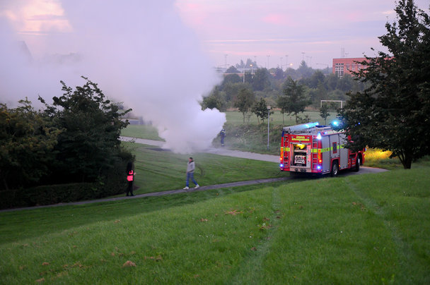 Brandvæsenet fik dog hurtigt slukket med en god omgang skum og hastede straks videre mod en ny opgave i Risskov. Denne gang på Hvidkildevej, hvor endnu en bil stod helt udbrændt.