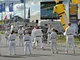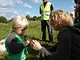 Vagtskiftet ved Marselisborg Slot skærtorsdag kl. 12 tiltrak mange fremmødte, mens politiets indsatsleder undervejs tog sig tid til at besvare spørgsmål fra en nysgerrig dreng.