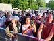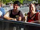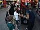 Vagtskiftet ved Marselisborg Slot skærtorsdag kl. 12 tiltrak mange fremmødte, mens politiets indsatsleder undervejs tog sig tid til at besvare spørgsmål fra en nysgerrig dreng.