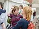 Vagtskiftet ved Marselisborg Slot skærtorsdag kl. 12 tiltrak mange fremmødte, mens politiets indsatsleder undervejs tog sig tid til at besvare spørgsmål fra en nysgerrig dreng.