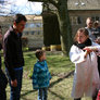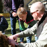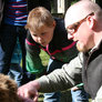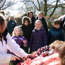 Vagtskiftet ved Marselisborg Slot skærtorsdag kl. 12 tiltrak mange fremmødte, mens politiets indsatsleder undervejs tog sig tid til at besvare spørgsmål fra en nysgerrig dreng.