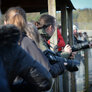 Vagtskiftet ved Marselisborg Slot skærtorsdag kl. 12 tiltrak mange fremmødte, mens politiets indsatsleder undervejs tog sig tid til at besvare spørgsmål fra en nysgerrig dreng.