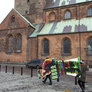 Vagtskiftet ved Marselisborg Slot skærtorsdag kl. 12 tiltrak mange fremmødte, mens politiets indsatsleder undervejs tog sig tid til at besvare spørgsmål fra en nysgerrig dreng.