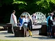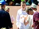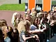 Vagtskiftet ved Marselisborg Slot skærtorsdag kl. 12 tiltrak mange fremmødte, mens politiets indsatsleder undervejs tog sig tid til at besvare spørgsmål fra en nysgerrig dreng.