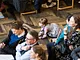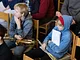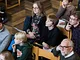 Vagtskiftet ved Marselisborg Slot skærtorsdag kl. 12 tiltrak mange fremmødte, mens politiets indsatsleder undervejs tog sig tid til at besvare spørgsmål fra en nysgerrig dreng.
