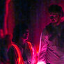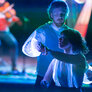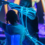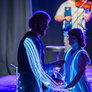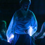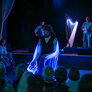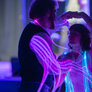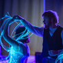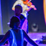 Nordisk folkedans i nye rammer, hvor gamle traditioner mødte LED-dansekostumer og UV-lys. Et mørkt rum med dansende par, hvor kjolens lysende skørt skabte overjordiske mønster i mørket.