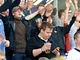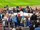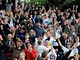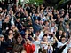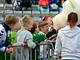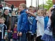 Vagtskiftet ved Marselisborg Slot skærtorsdag kl. 12 tiltrak mange fremmødte, mens politiets indsatsleder undervejs tog sig tid til at besvare spørgsmål fra en nysgerrig dreng.