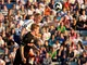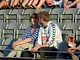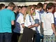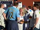 Vagtskiftet ved Marselisborg Slot skærtorsdag kl. 12 tiltrak mange fremmødte, mens politiets indsatsleder undervejs tog sig tid til at besvare spørgsmål fra en nysgerrig dreng.