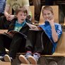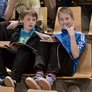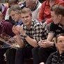 Vagtskiftet ved Marselisborg Slot skærtorsdag kl. 12 tiltrak mange fremmødte, mens politiets indsatsleder undervejs tog sig tid til at besvare spørgsmål fra en nysgerrig dreng.