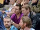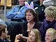 Vagtskiftet ved Marselisborg Slot skærtorsdag kl. 12 tiltrak mange fremmødte, mens politiets indsatsleder undervejs tog sig tid til at besvare spørgsmål fra en nysgerrig dreng.