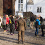 Vagtskiftet ved Marselisborg Slot skærtorsdag kl. 12 tiltrak mange fremmødte, mens politiets indsatsleder undervejs tog sig tid til at besvare spørgsmål fra en nysgerrig dreng.