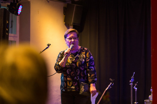Inger Boysen bød velkommen til den 2. blues jam på Gyngen, og det skulle vise sig at blive en succes!! 100 mennesker inde, heraf 14 musikere