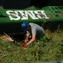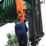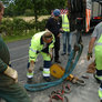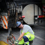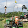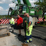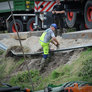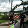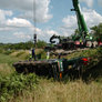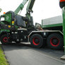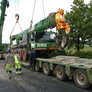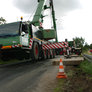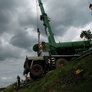 Idag skulle den uheldige kran så hentes op af grøften igen. Det er ikke det nemmeste opgave i verden når det drejer sig om et special kørtøj som vejer 56 tons.