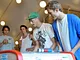Vagtskiftet ved Marselisborg Slot skærtorsdag kl. 12 tiltrak mange fremmødte, mens politiets indsatsleder undervejs tog sig tid til at besvare spørgsmål fra en nysgerrig dreng.